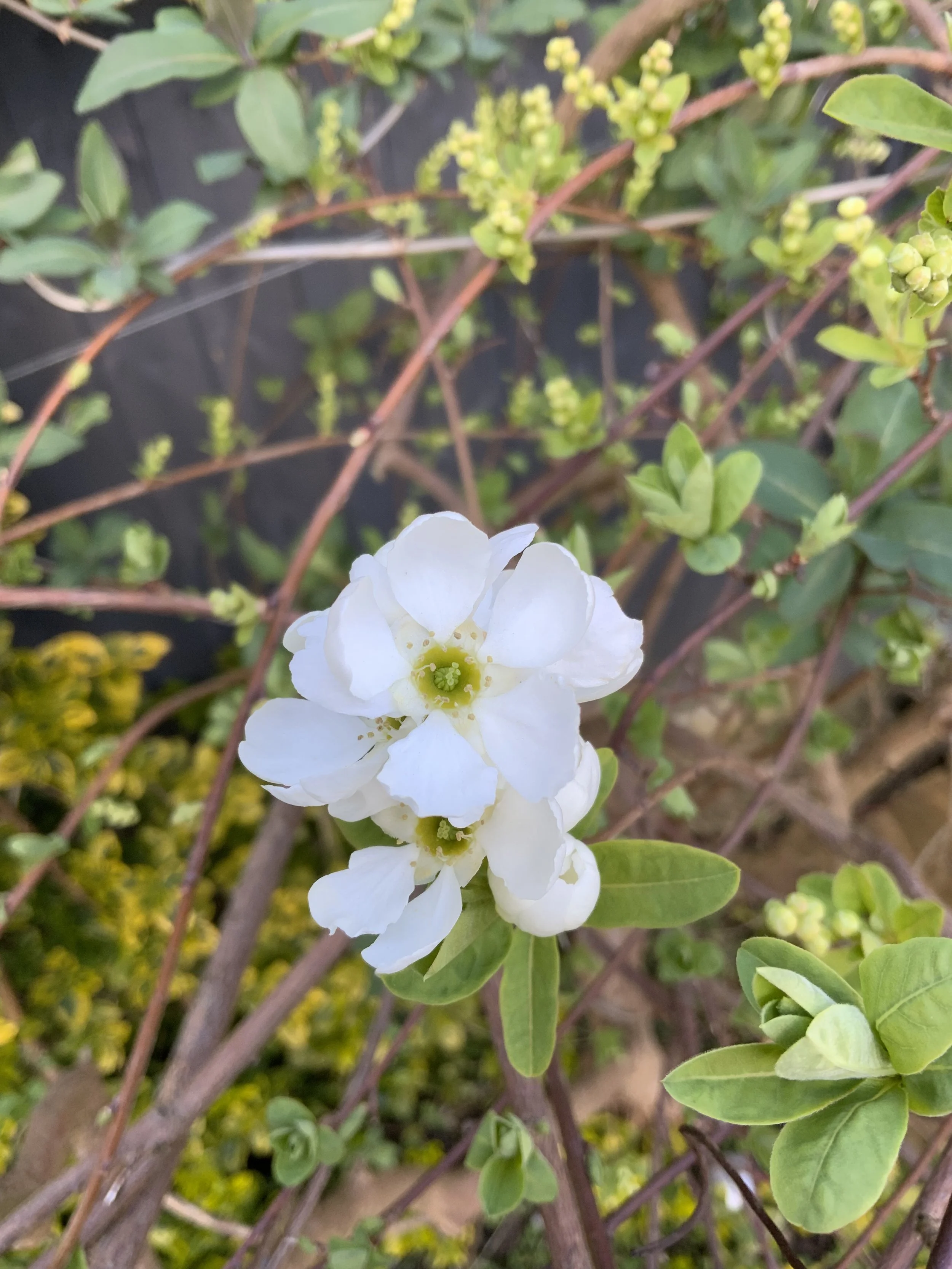 The final thing I want to show you is my beautiful macrantha x exchordia ‘The Bride’, which has it’s first flower of the year today. My parents gave me this plant 15 years ago when we first moved to this house, and every year I wait with glee for it to flower. It’s drooping branches are so pretty covered in little white flowers, which later turn into star-shaped seedpods.