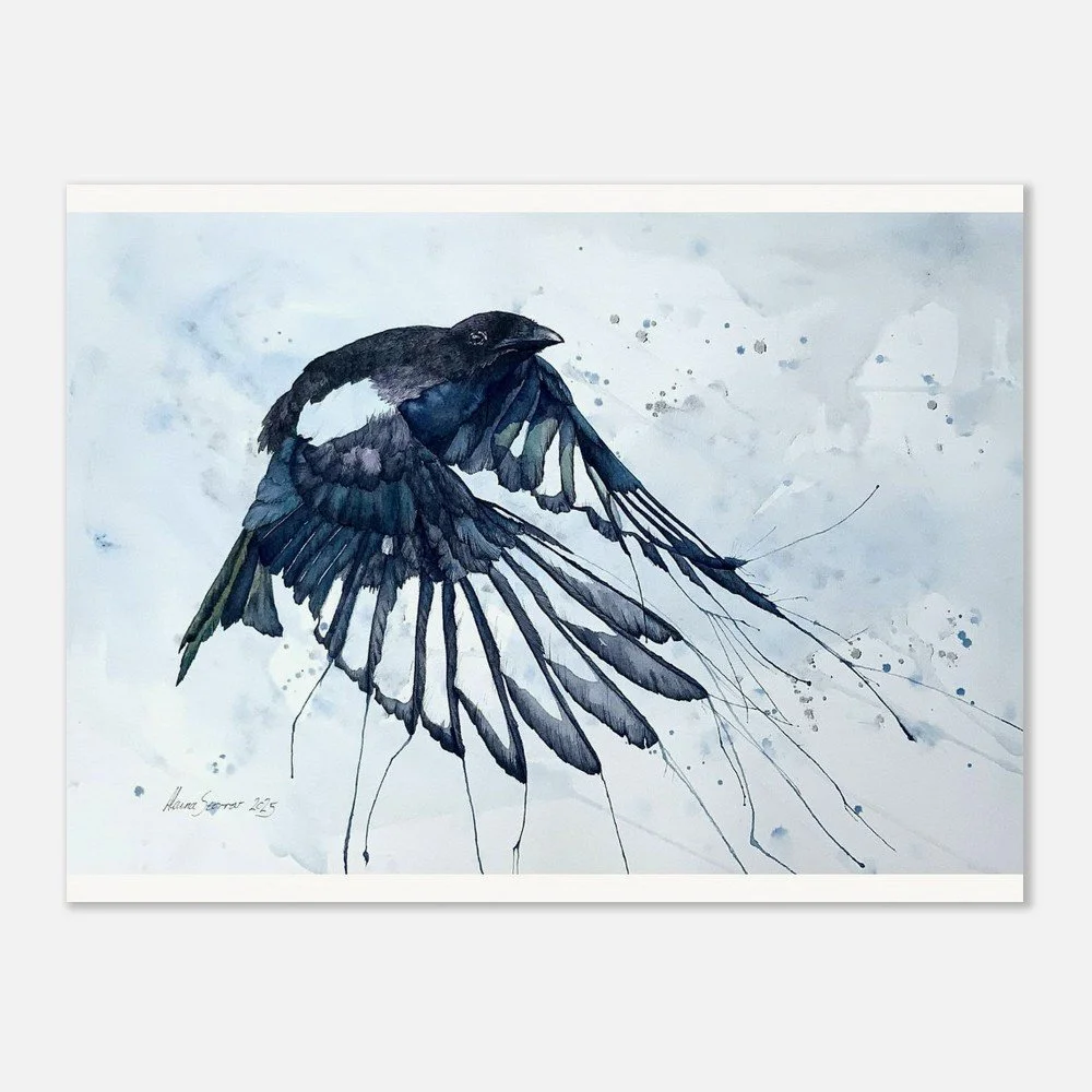 Magpie in Flight mini-print - 15x20 cm / 6x8″